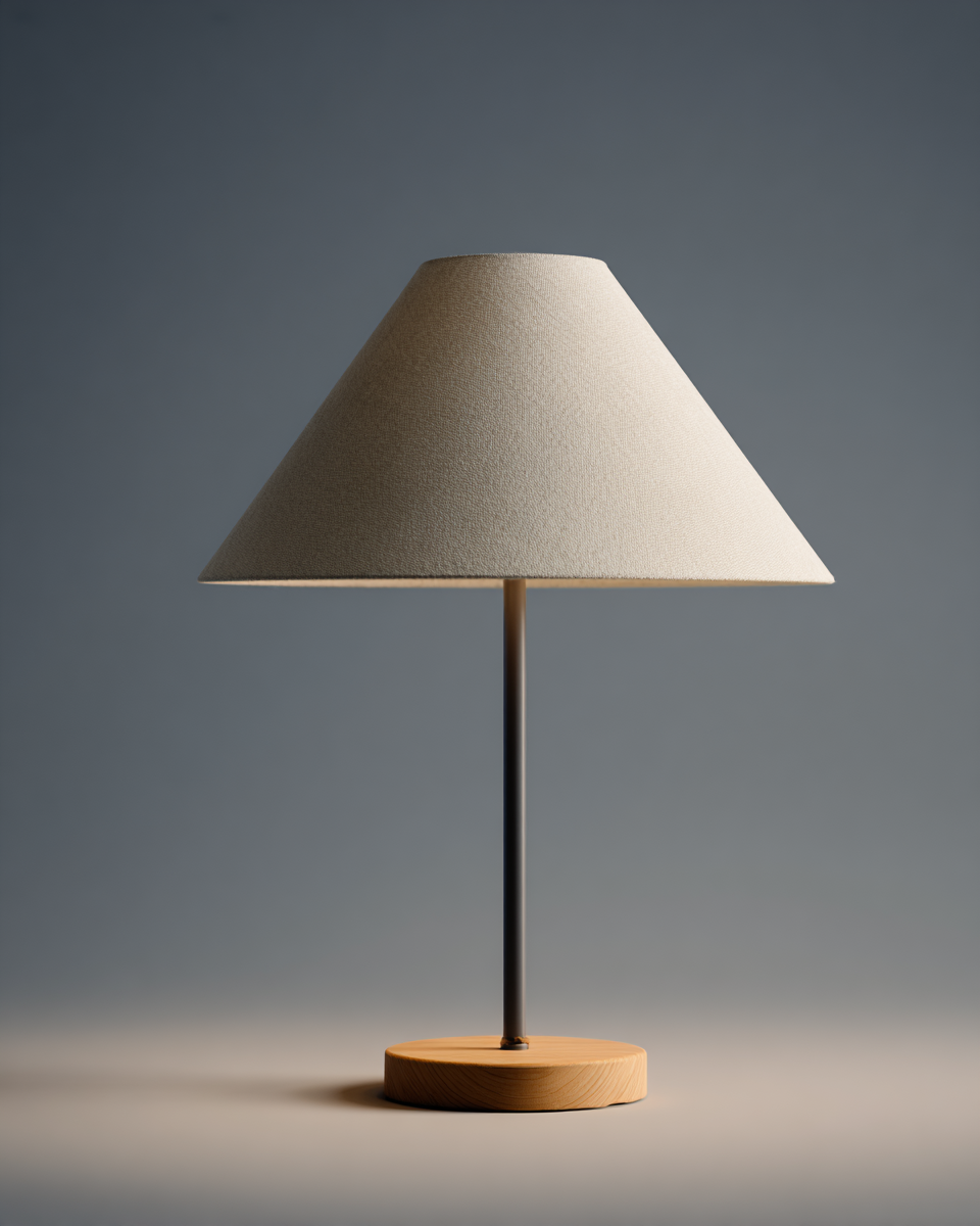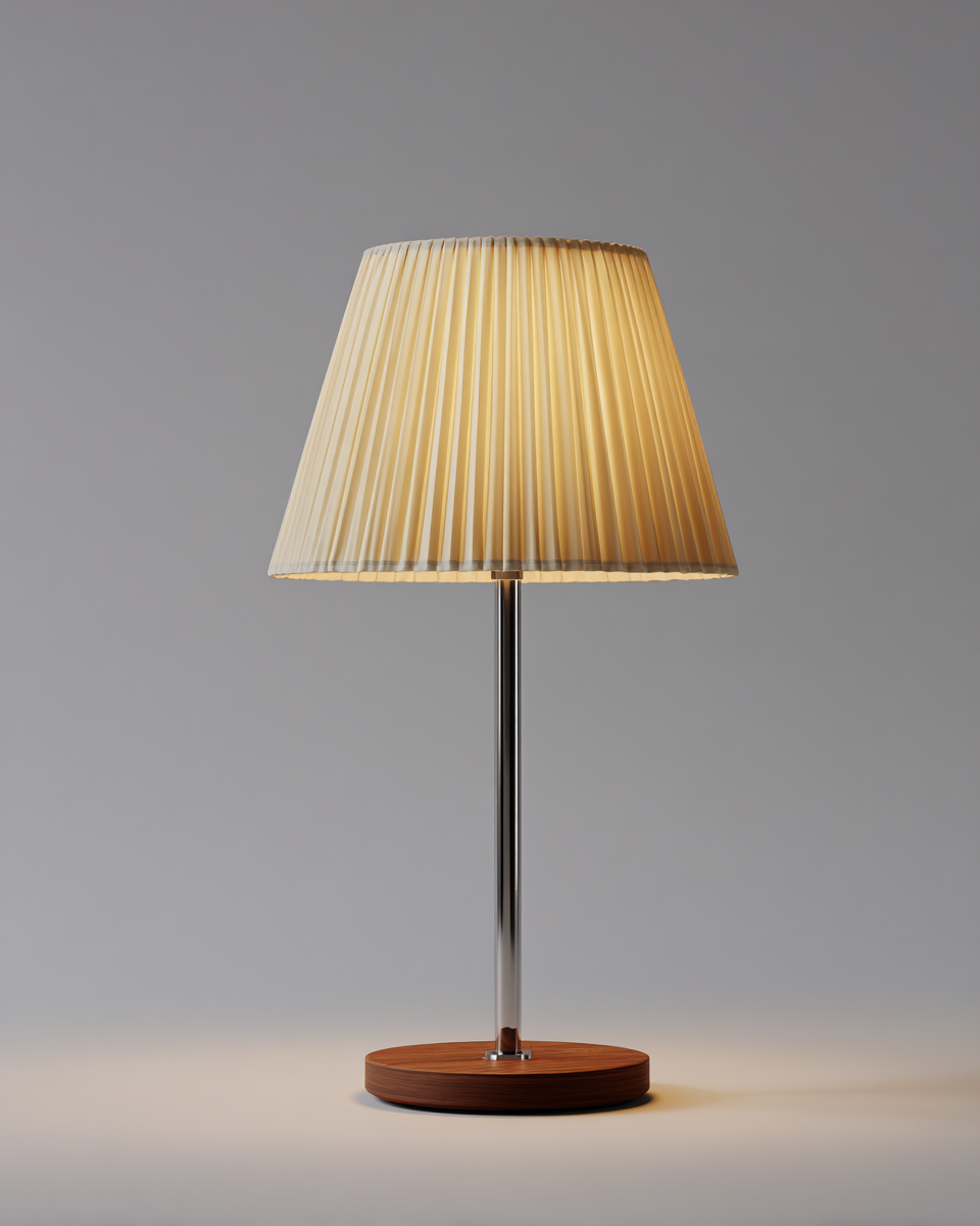 램프의 정체성을 유지하는 핵심 요소는 갓의 비율, 세로로 긴 기둥, 둥근 베이스 구조였다.