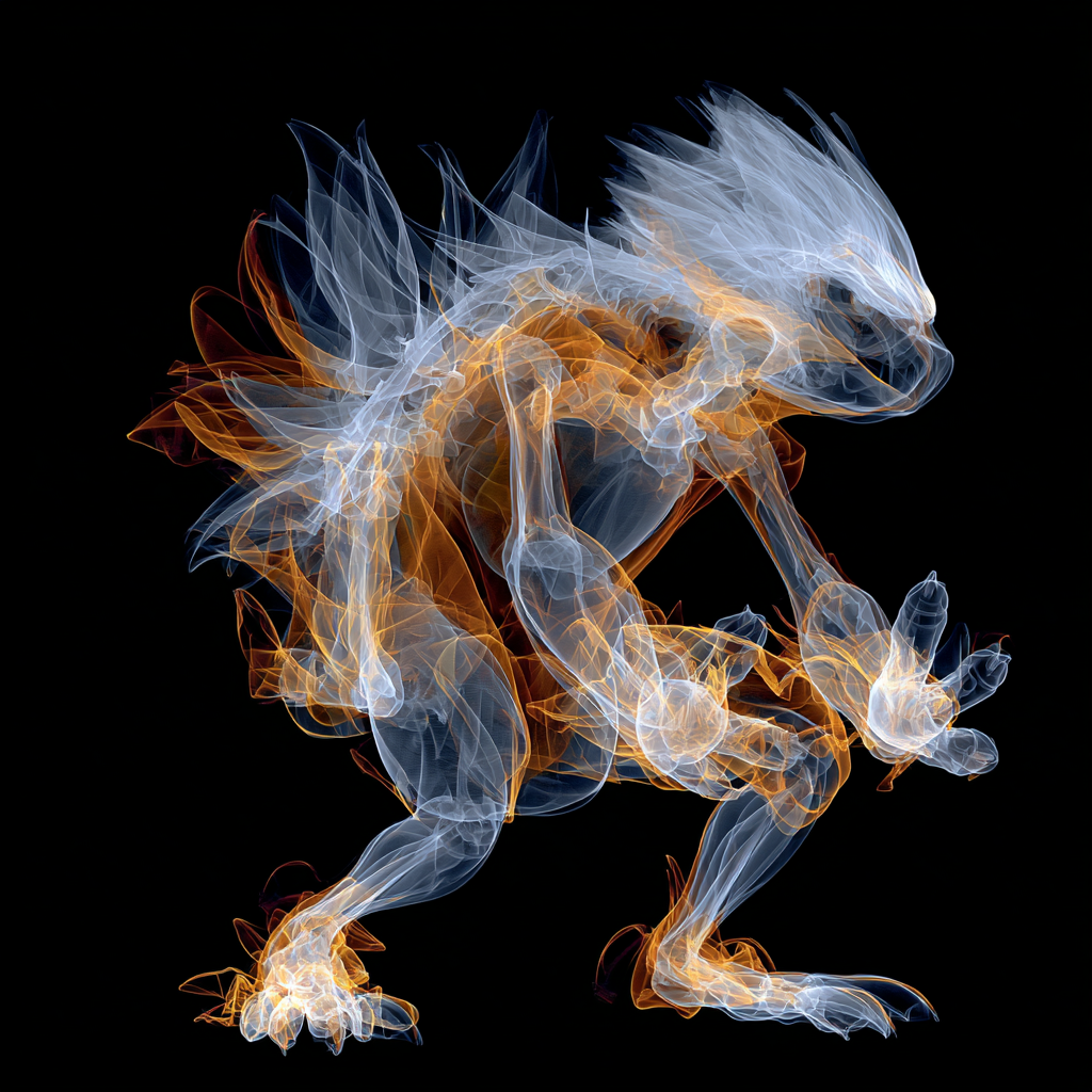 길게 변형되며 늘어난 형태: 공기나 물의 흐름, 혹은 뱀처럼 느껴지며 유동성과 생동감이 느껴짐