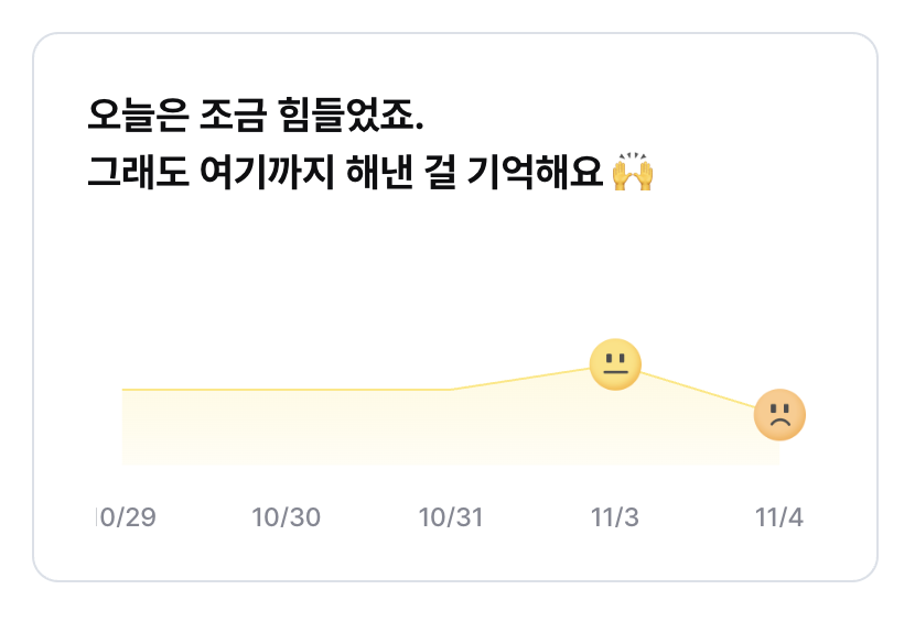 사실 감정 기복이 거의 없는데 위로는 잘 안올라가고 항상 중간이나 살짝 밑인 것 같다. 긍정적으로 생각할 필요성을 느낀다.