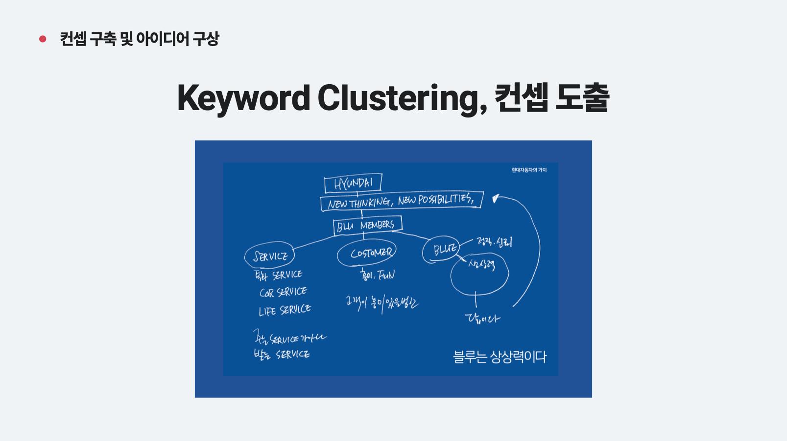 디자인 프로세키워드 클러스터링이라는 용어가 낯설어서 찾아보니 그루핑이었다. 아이디어들을 도출한 후에 유사한 것끼리 묶다 보면 길이 보일 때가 있다. 주변을 정리하듯 생각도 정리하는 습관을 들일 필요성이 있어 보인다.