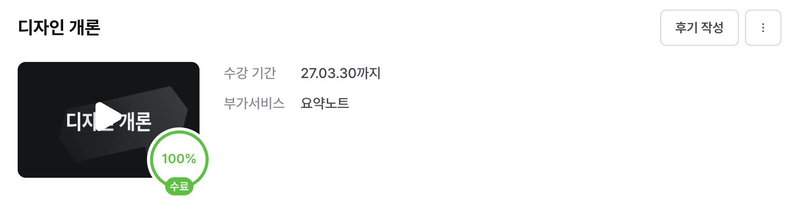 3강 타이포그래피, 4강 레이아웃, 5강 디자인에서의 색상, 6강 디자인 프로세스 수강