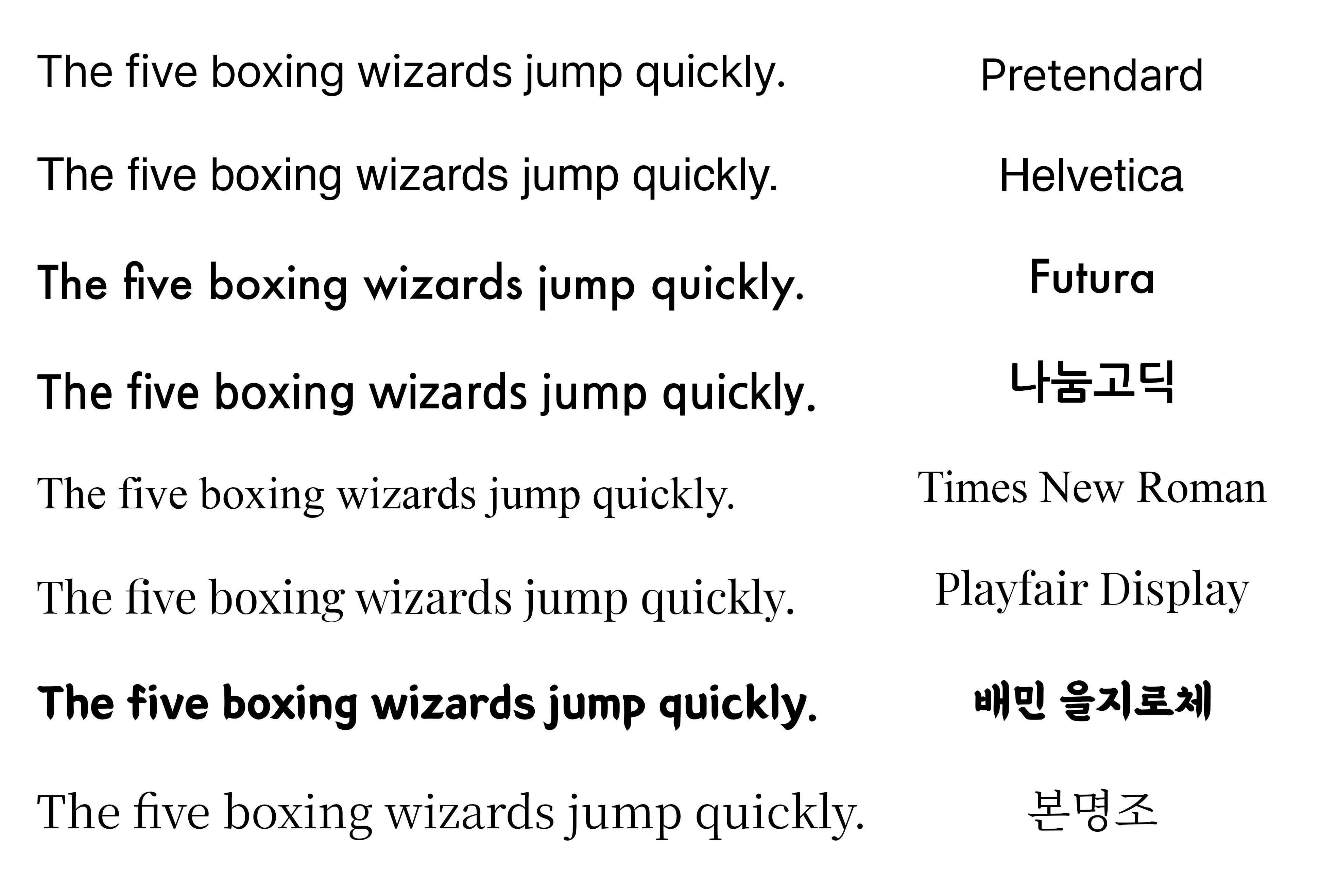 Pretendard, Helvetica: 깔끔하며 모던한 느낌