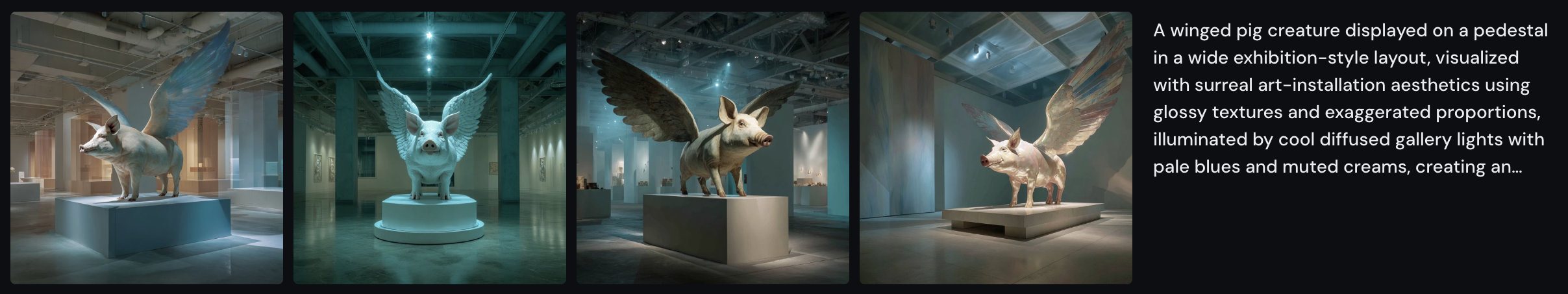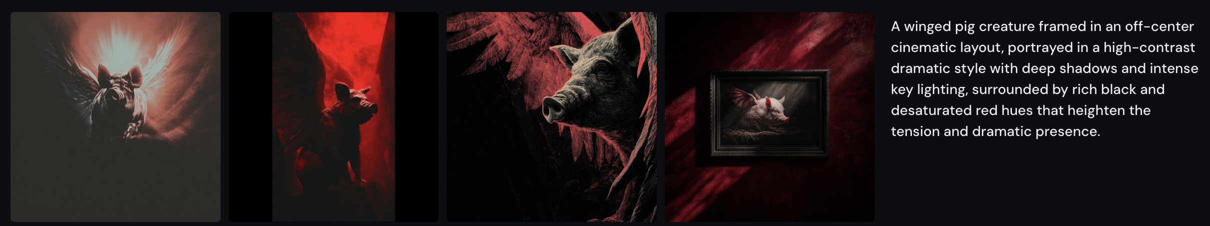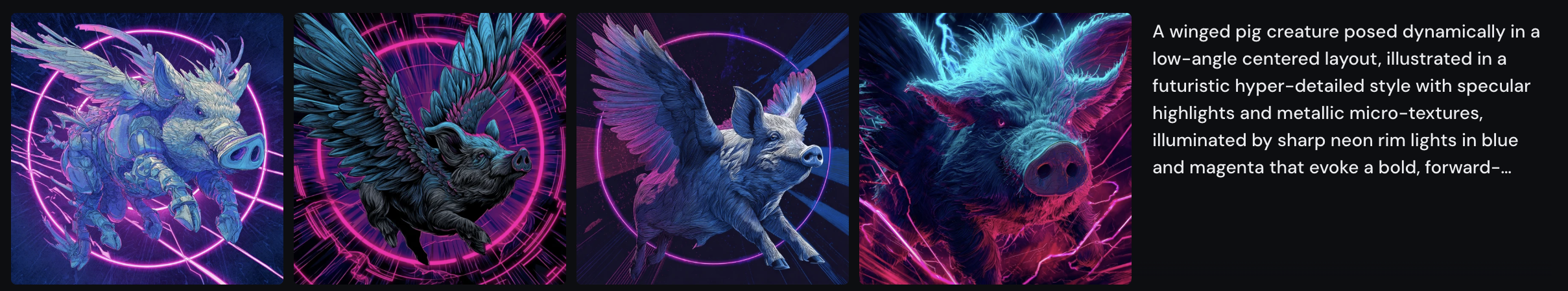 날개 달린 돼지를 키워드로 5가지 버전 프롬프트를 만들어달라고 요청해봤다.