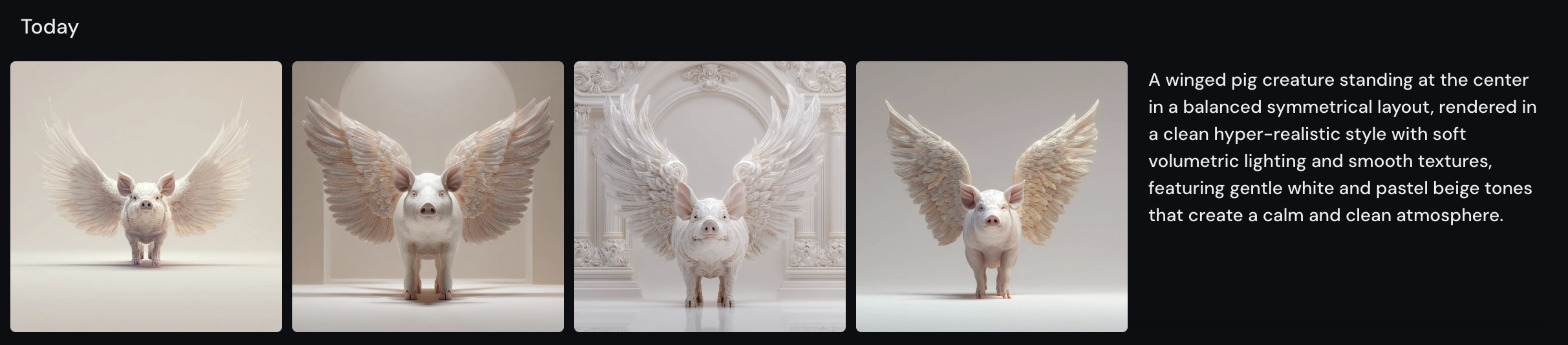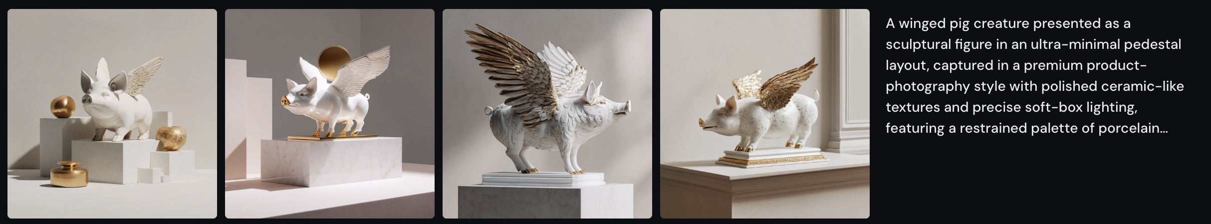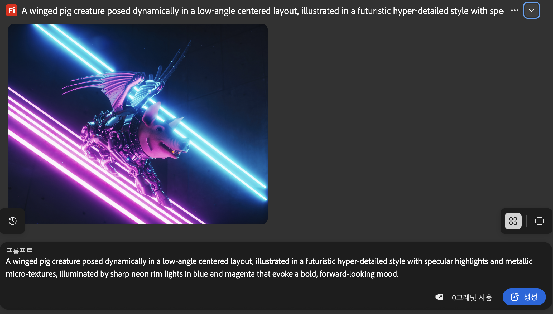 날개 달린 돼지를 키워드로 5가지 버전 프롬프트를 만들어달라고 요청해봤다.