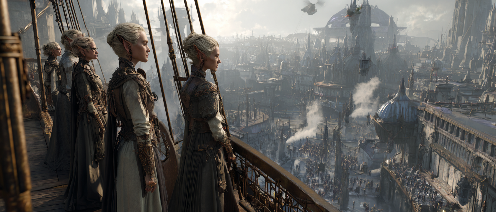 엘프들은 비행선에 타서 도시를 내려다보는듯한 느낌으로 만들어졌다.
