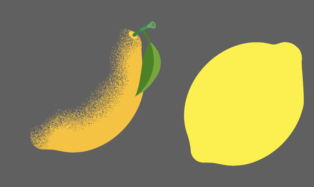 플랫한 오브젝트에 그레인 효과를 입히면 감성적인 분위기가 더해져 완성도를 한층 높일 수 있음.