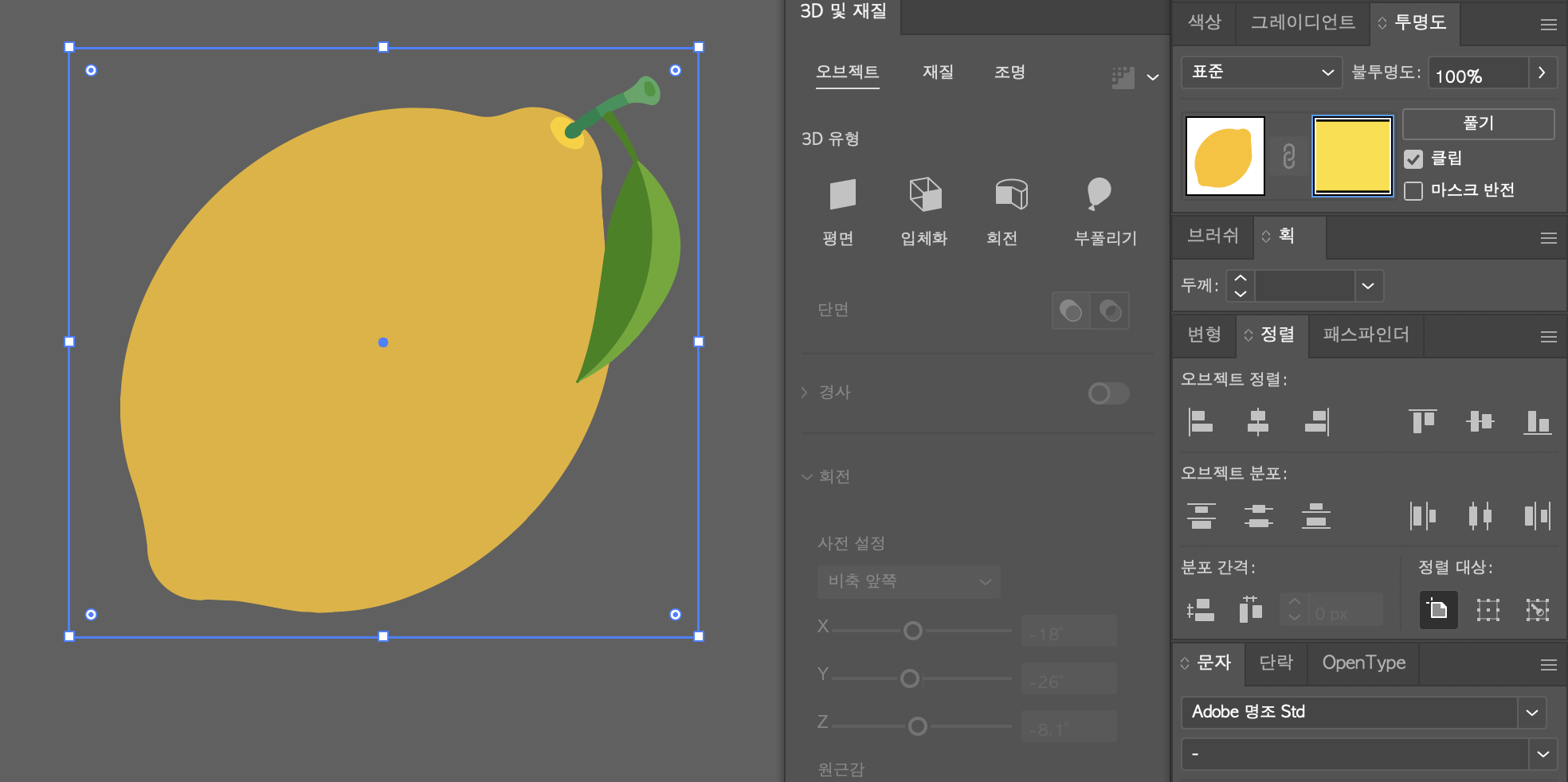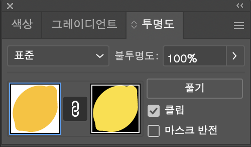 2.투명도 패널에서 마스크 생성, 우측의 마스크 오브젝트 선택