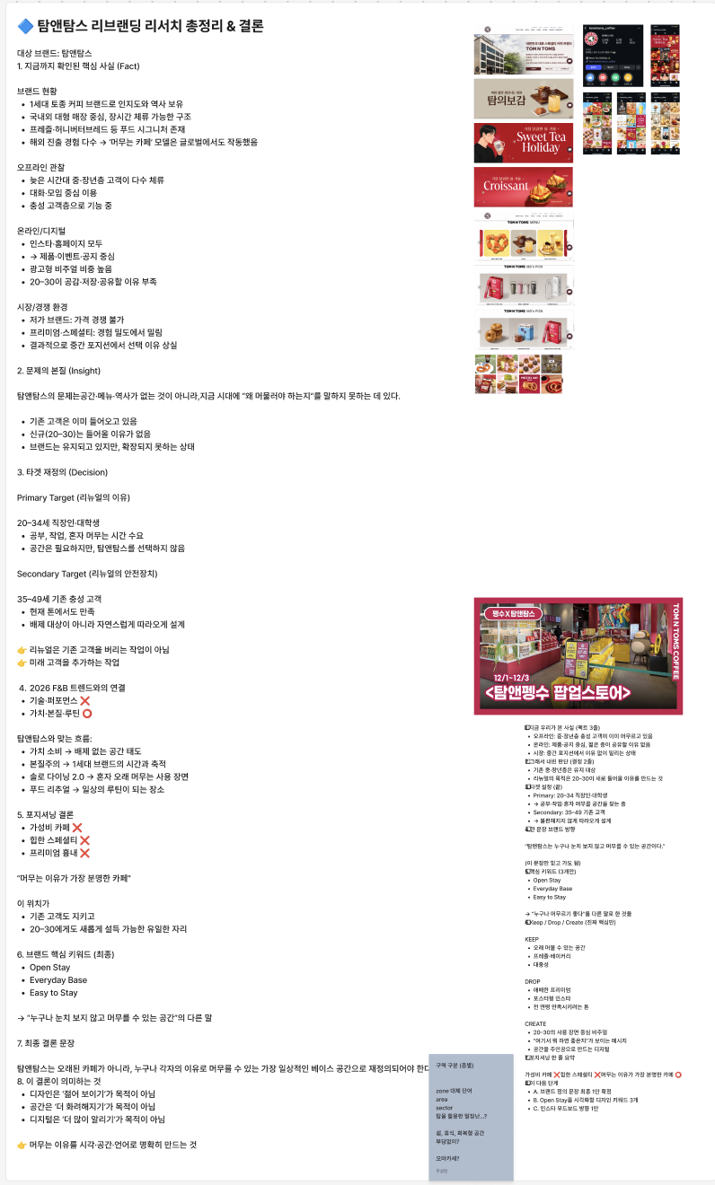 이번 조별 과제는 탐앤탐스 리브랜딩이다.