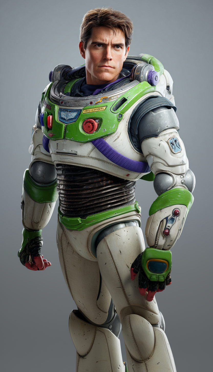 이것도 생성한지 몇주 된 것 같은데, 버즈 라이트이어 우주복을 입은 톰 크루즈를 비율을 늘려 확대해봤다.