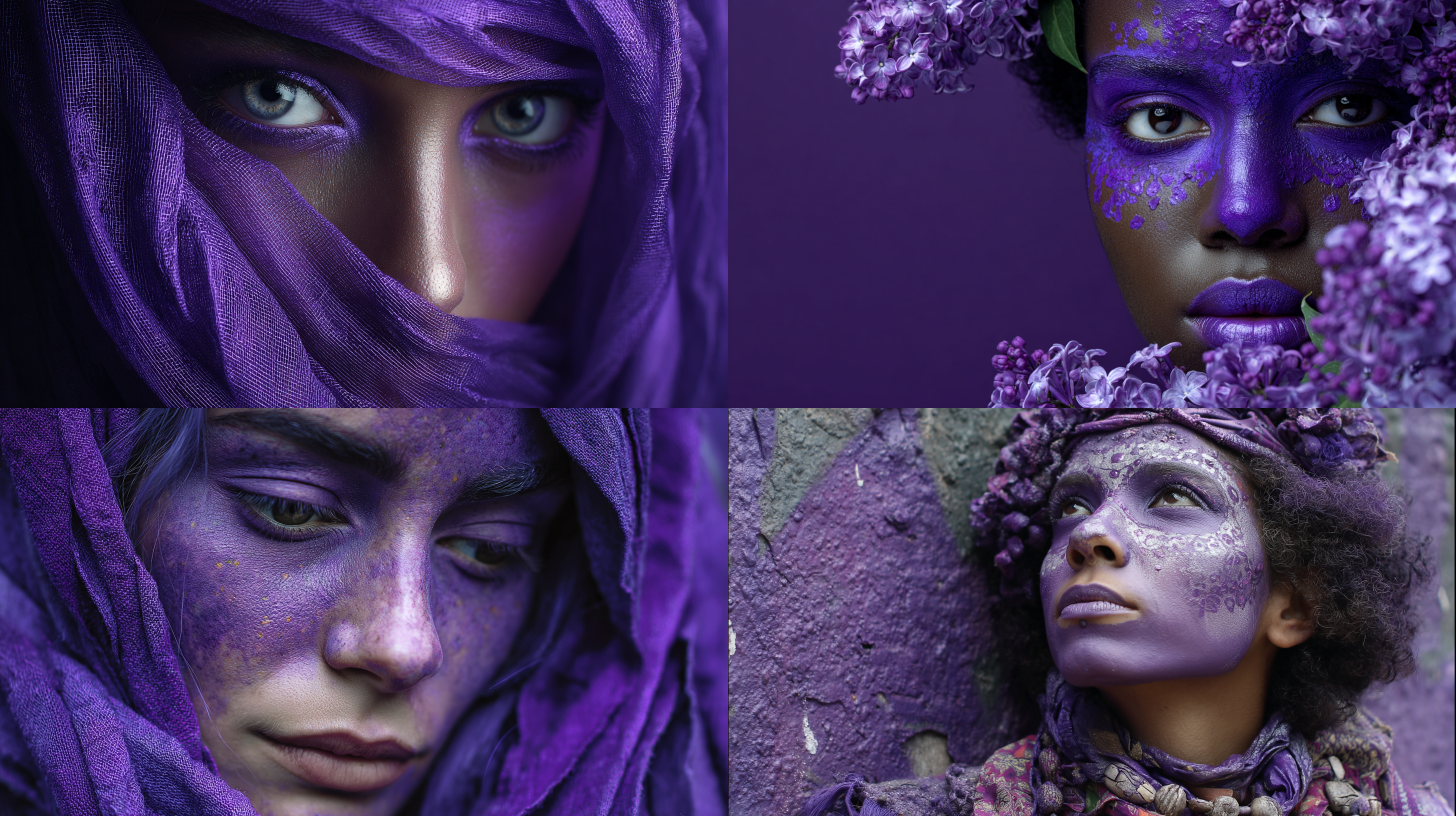 Purple woman이라는 프롬프트로 이미지를 생성하자 네 이미지 모두 얼굴에 보라색 물감을 바른 여성이 생성됐다.