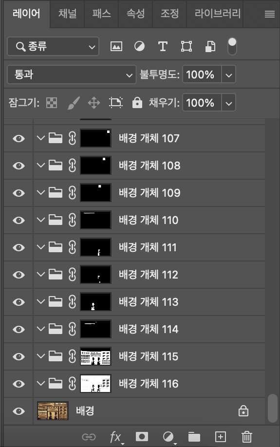 선택 툴로 유리창들을 선택 > 레이어 마스크 추가 > command+i로 반전 선택 > 뒤의 이미지가 보임