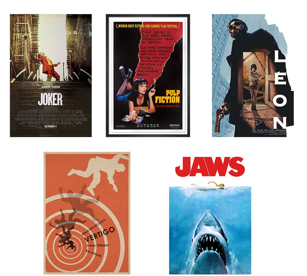 5. 죠스 - 시선의 흐름 하향 구조: 마지막에 인물에게 시선이 다시 올라감. 타이틀>사람>상어>사람 - 시선 이동이 자연스럽게 느껴진 이유 강한 레드 타이틀과 블루 바다의 대비로 상단에서 시작한다. 세 요소가 수직으로 중앙 정렬되어 있어 시선이 깊이감 있게 아래로 미끄러진다. 수평의 수면선이 한 번 멈춤을 만든 뒤, 거대한 상어의 삼각형 실루엣과 입이 위를 가리키는 화살표처럼 작동해 다시 인물 쪽으로 시선을 되돌린다. - 정보의 우선순위 표현 방식 블루 계열의 포스터에 큼직한 고채도 레드 타이틀을 넣어 1순위로 시선이 갈 수밖에 없게끔 했다. 화이트의 넓은 여백도 이를 돋는다. 포스터의 약 절반을 차지하는 상어는 크기와 묘사, 명암 대비로 2번째를 차지한다. 수영하는 인물은 가장 작지만 상어의 습격이라는 영화의 주제를 드러낼 수 있게 피부톤과 하이라이트를 주어 바다와 구분을 줬다. |
