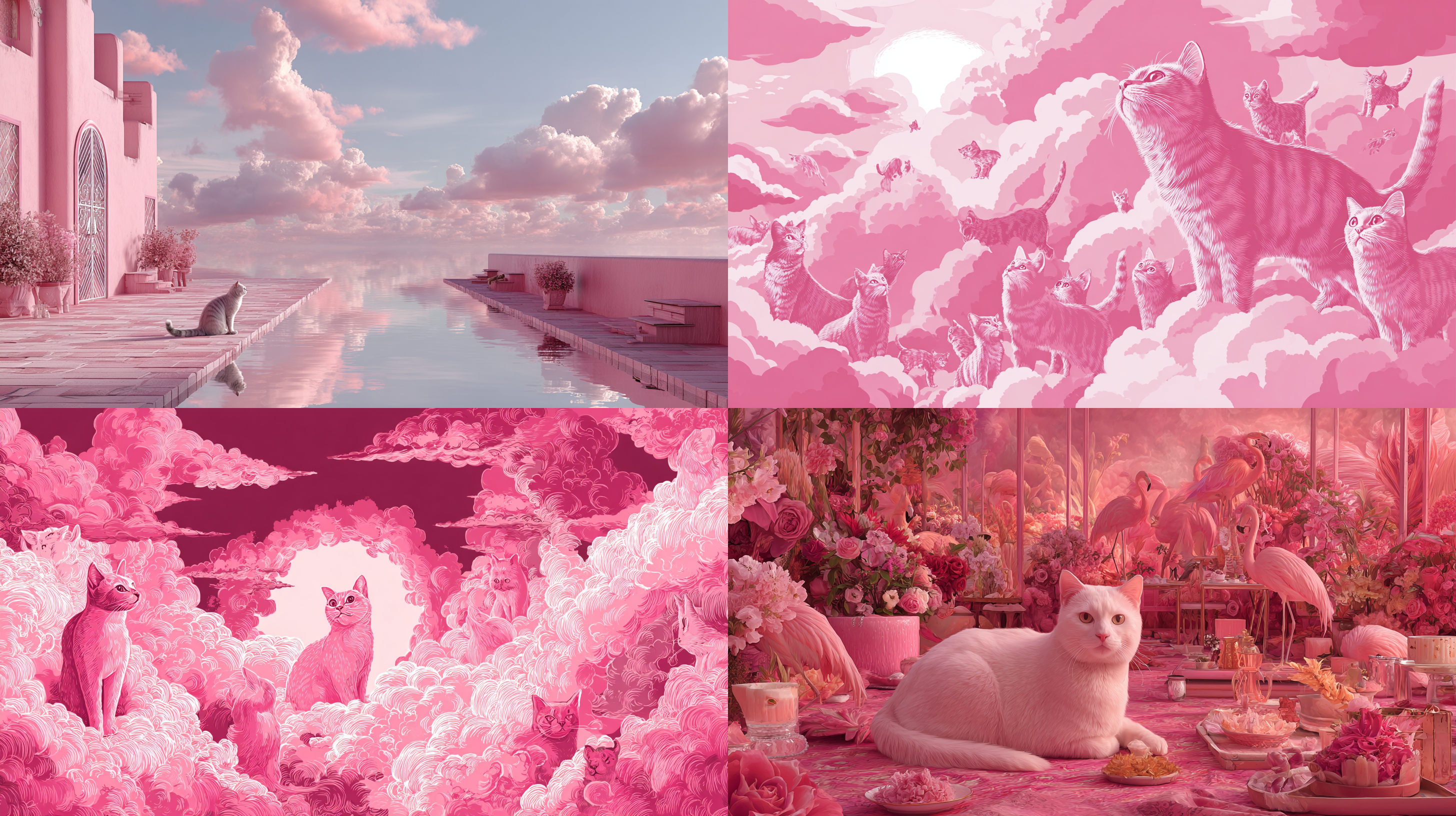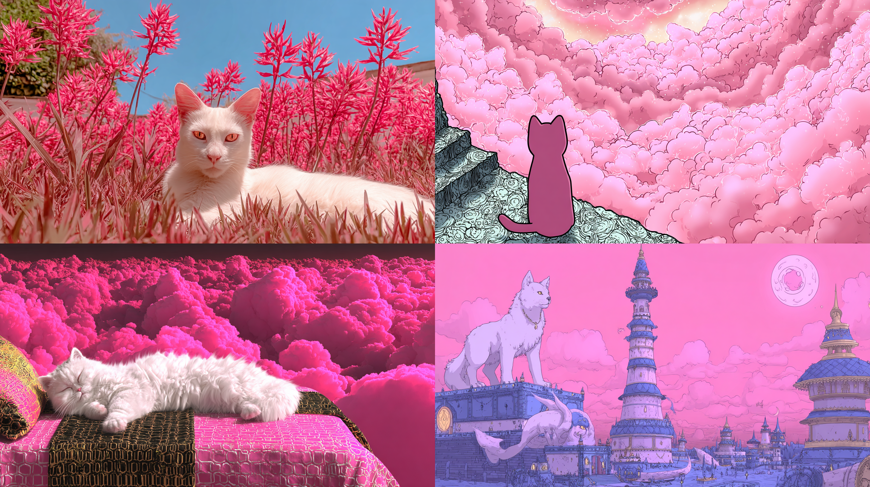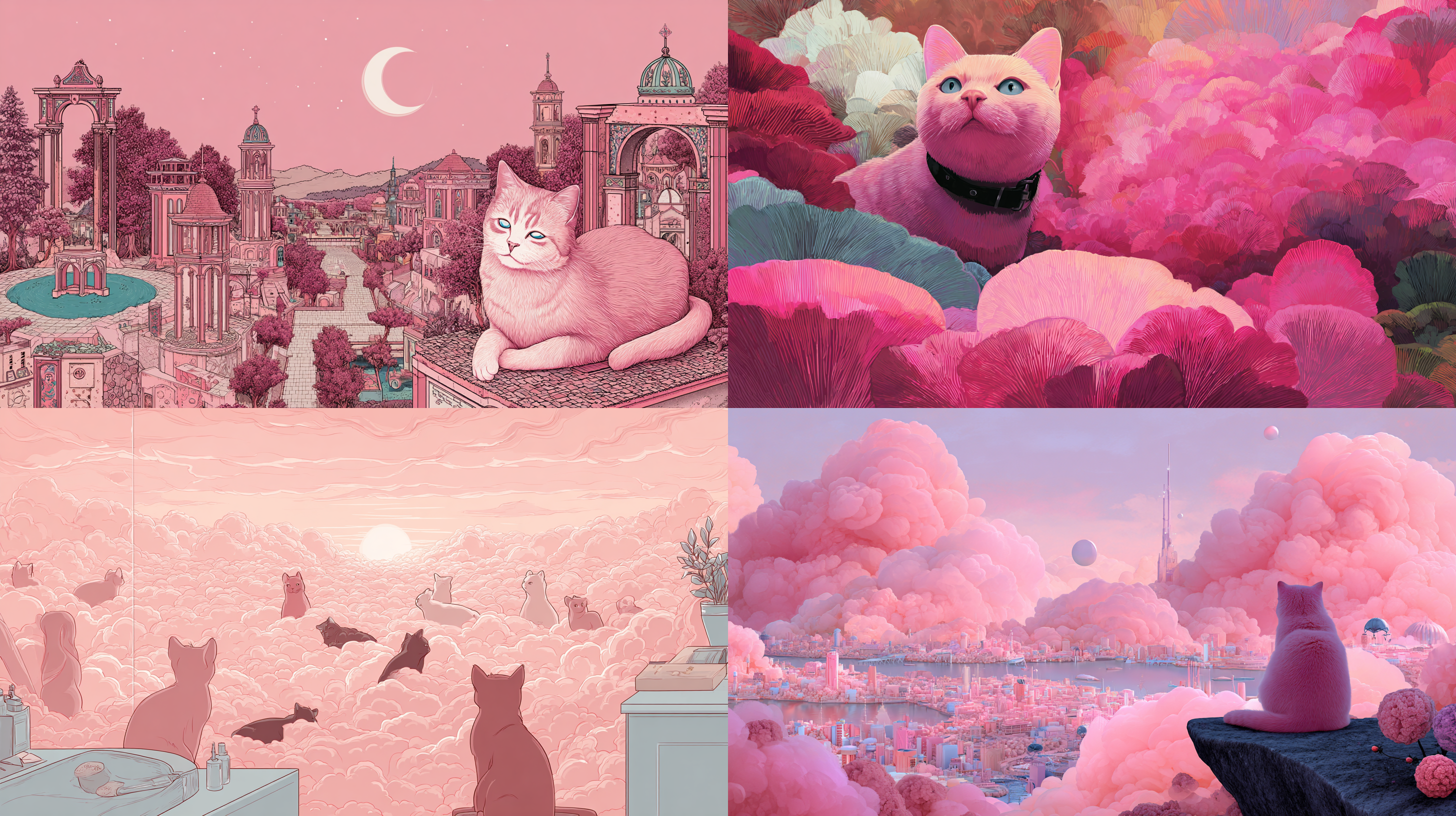프롬프트는 전부 동일하게 pink cat heaven으로 했다.