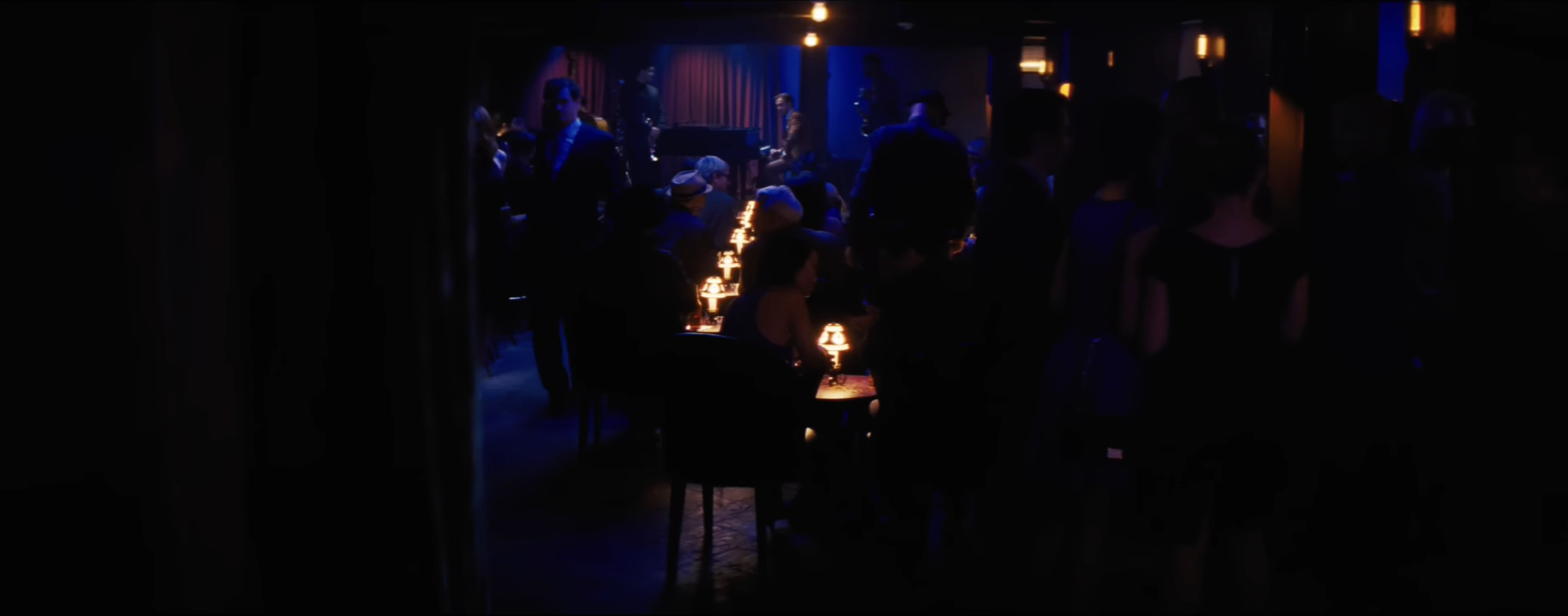 - 카메라는 재즈 클럽의 끝에서 끝까지 공간 전체를 보여주고, 이로 인해 남자는 화면 속에서 매우 작게 보인다.