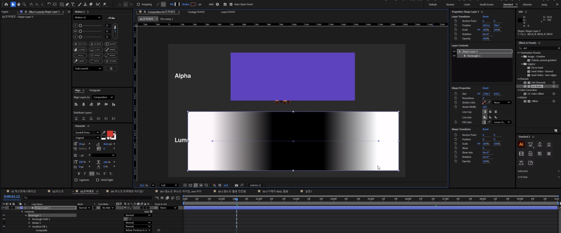 - 알파매트 = 다른 레이어를 기준 삼아 자르기