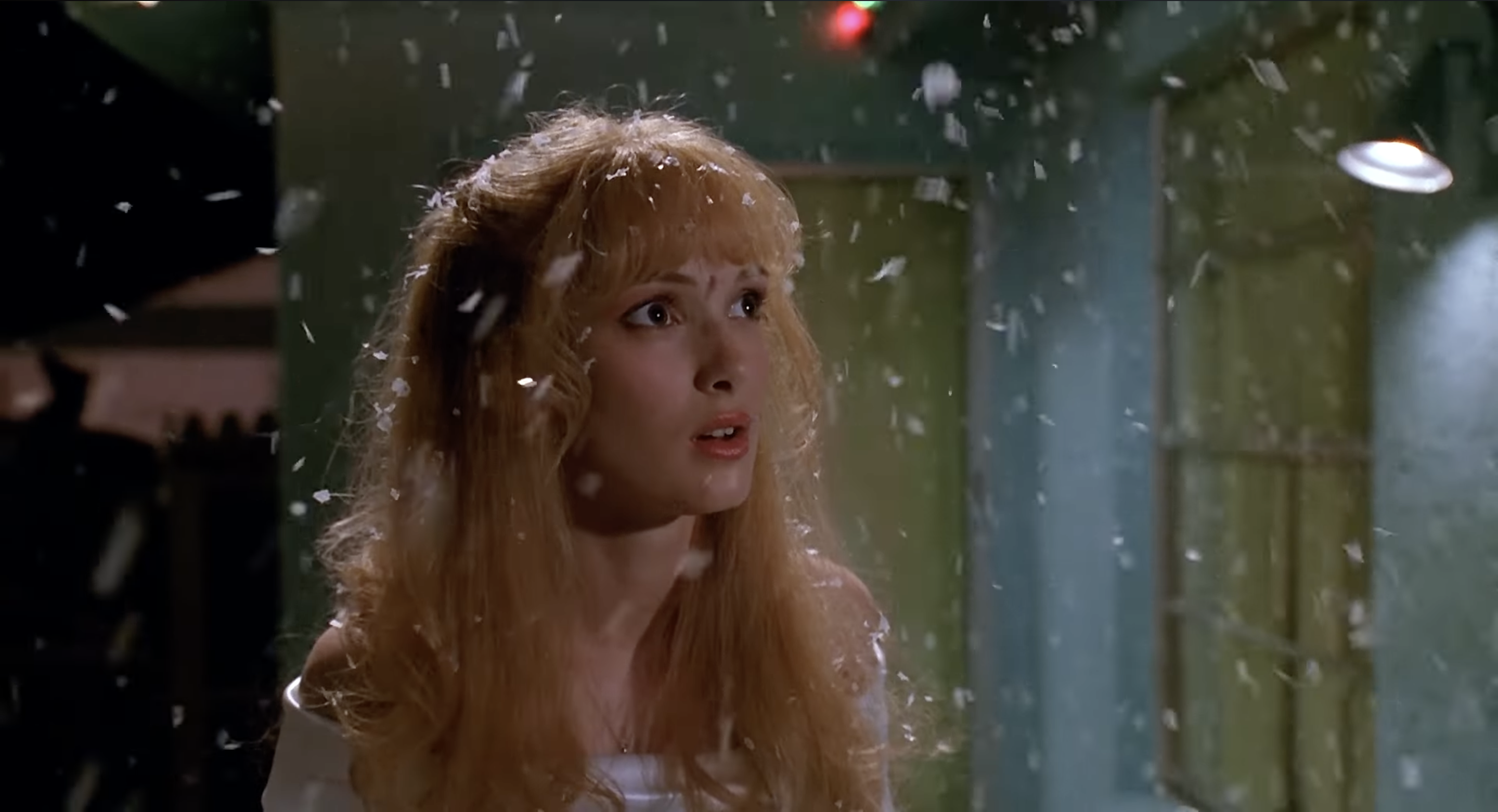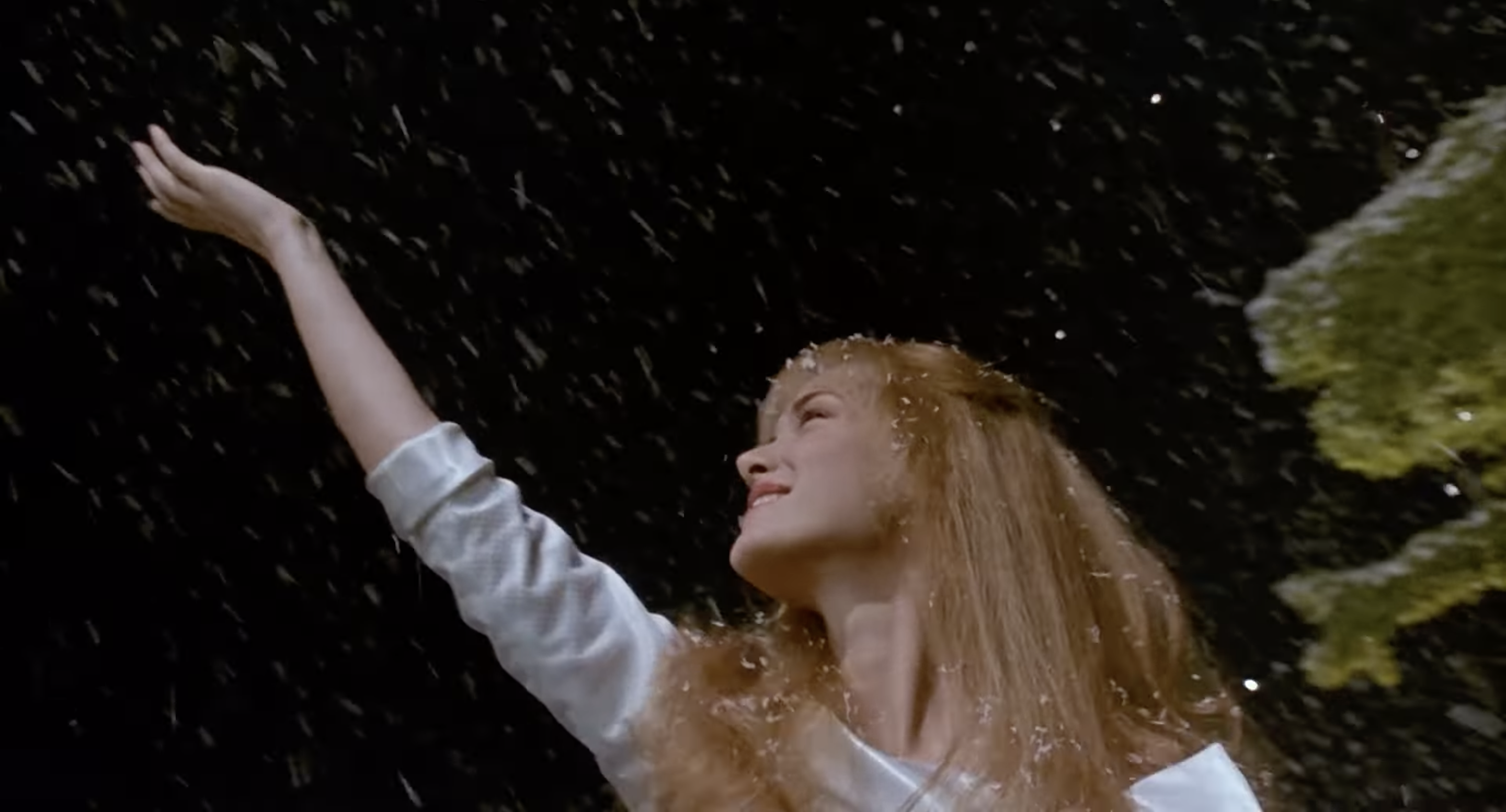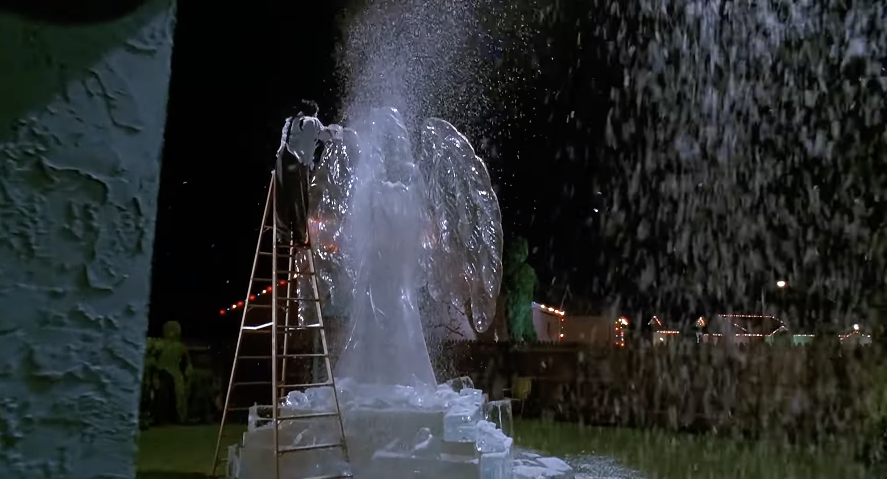 - 음악은 에드워드가 사다리를 내려오다 킴의 손을 베는 순간 갑작스럽게 중단됨