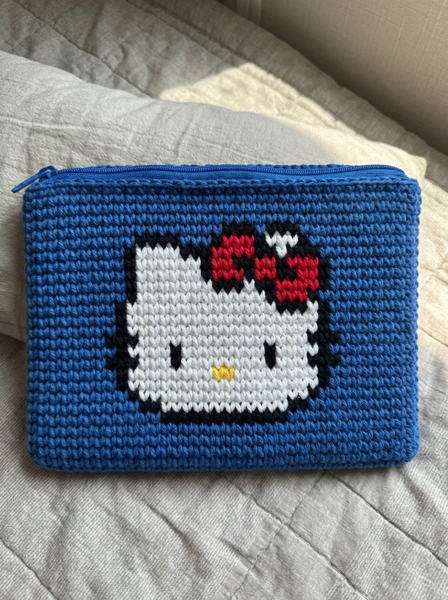 코바늘 구슬뜨기 기법을 이용해 만들어야 하는 도안이기에 이를 명시하지 않아서 일반 뜨개질 파우치가 나와버린 것이다.