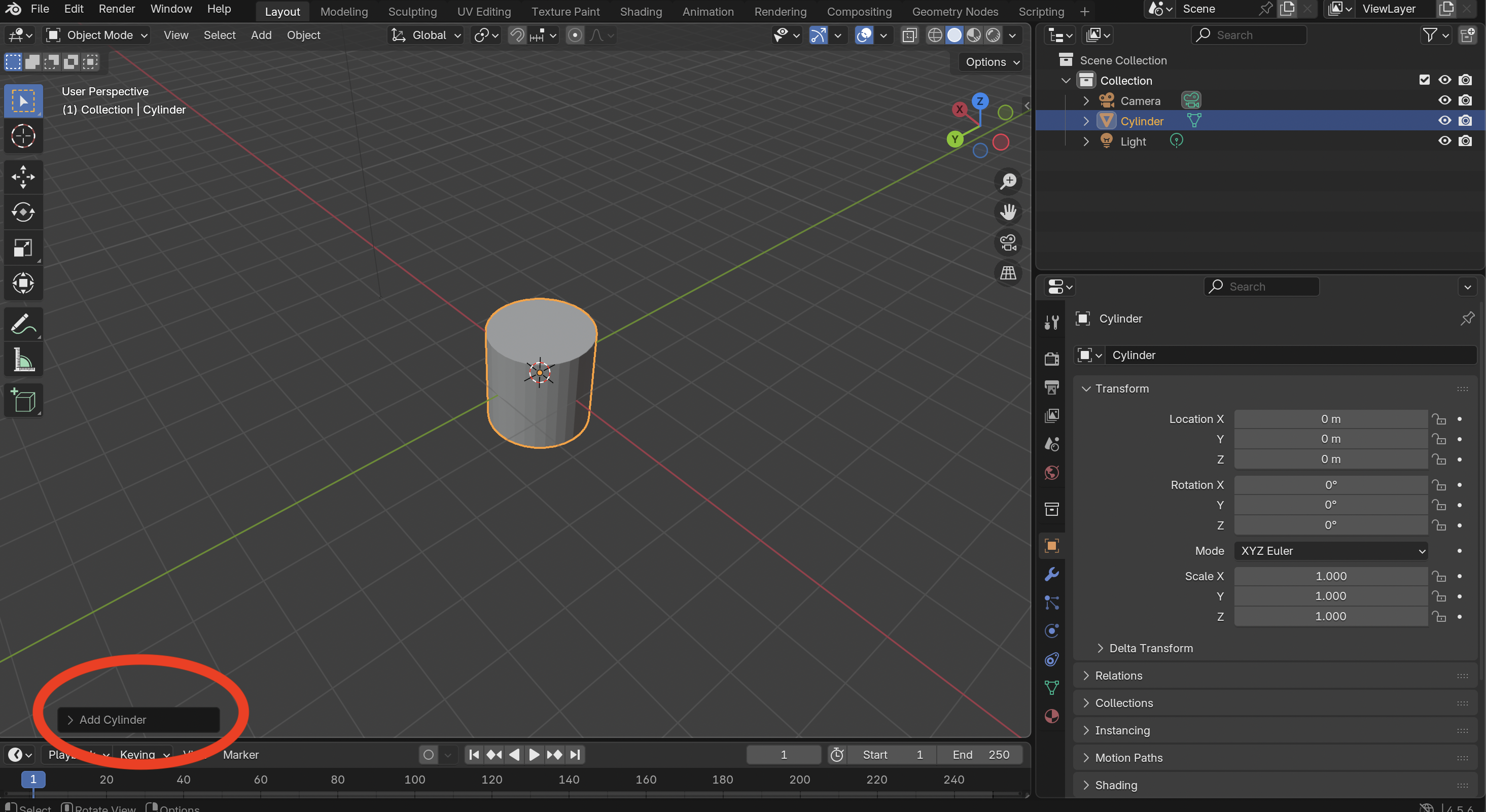 실린더를 생성한 후, 다른거 건드리면 바로 저게 사라진다.