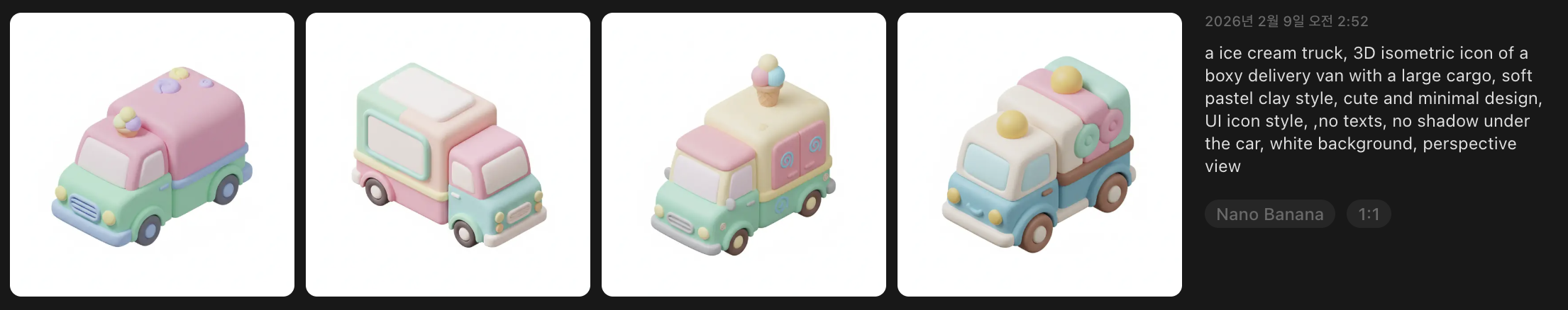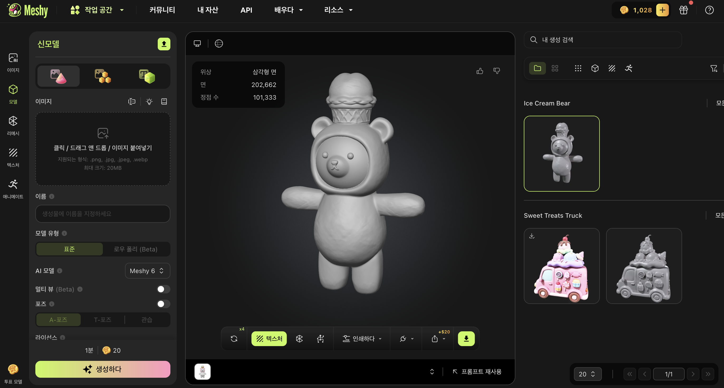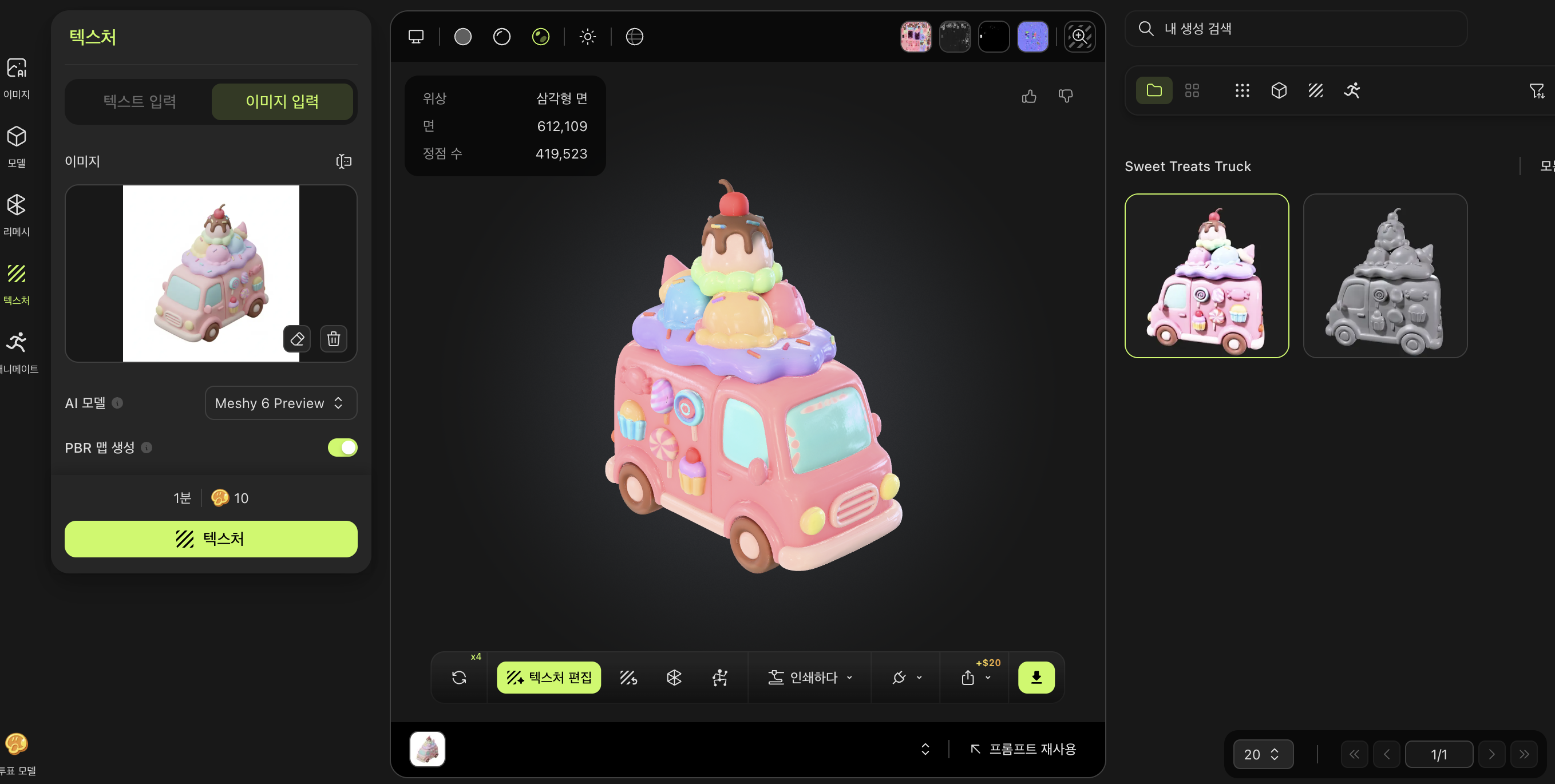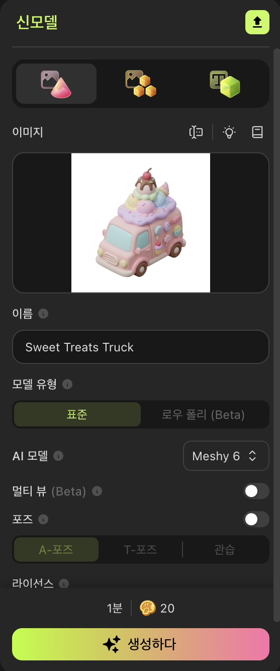 필수과제 2번은 아이스크림 트럭과 곰돌이 인형을 ai로 생성해 모델링까지 시키는 과정이었다.