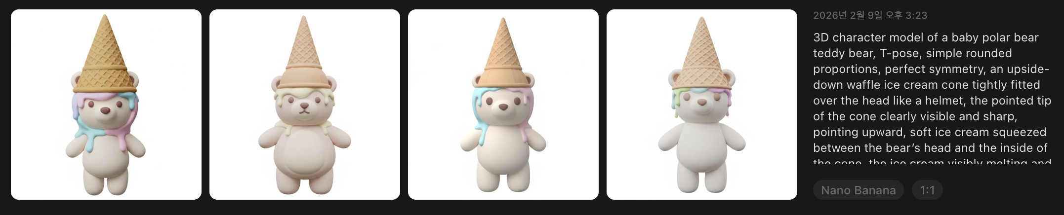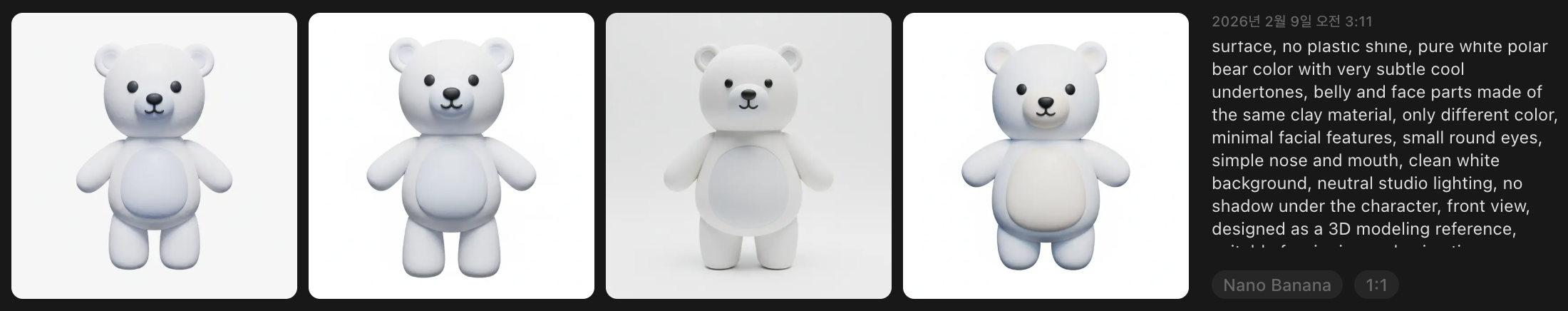 북극곰을 메쉬에서 나노바나나로 생성했는데 어딘가 밋밋하다.